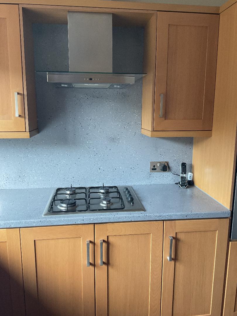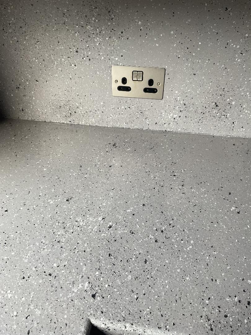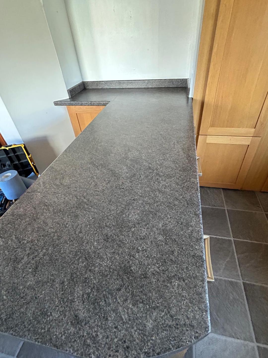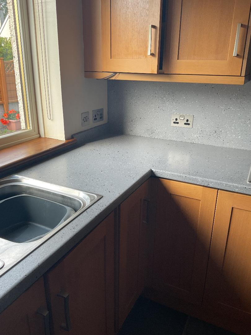 Spray Granite Application to Worktops and Splash Back – before and after