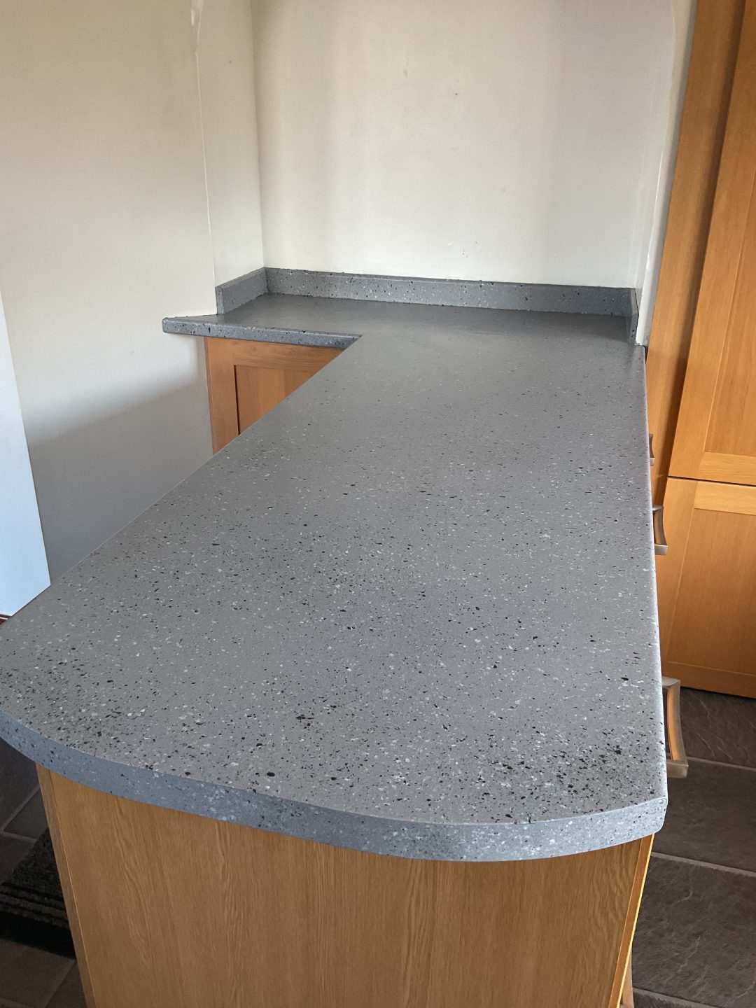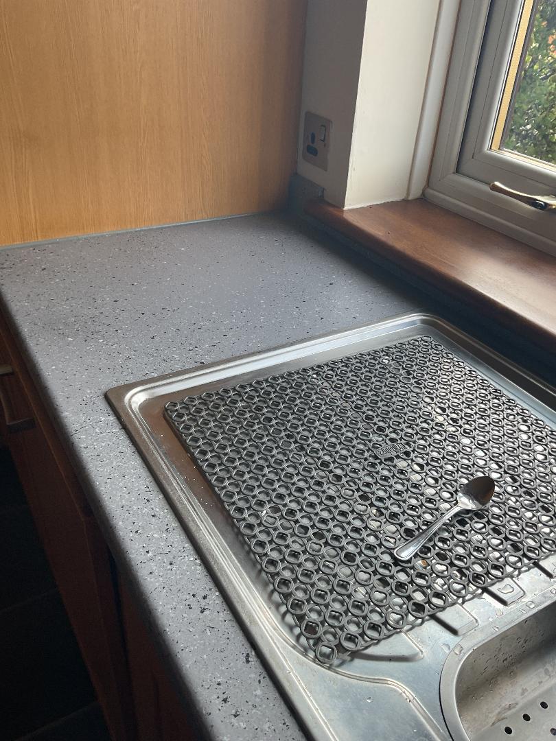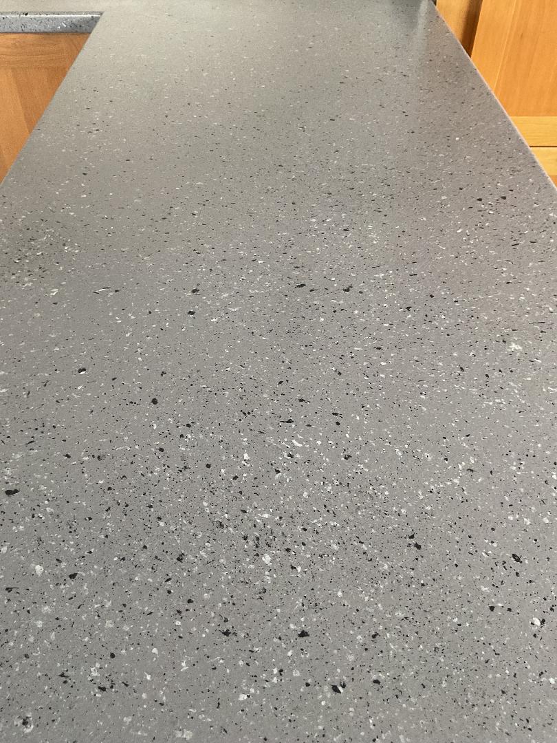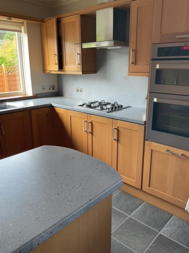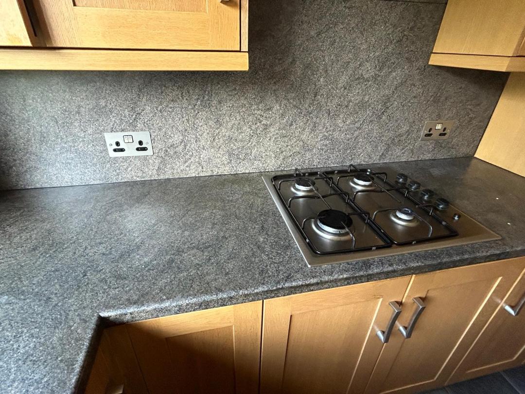 Spray Granite Application to Worktops and Splash Back – before and after